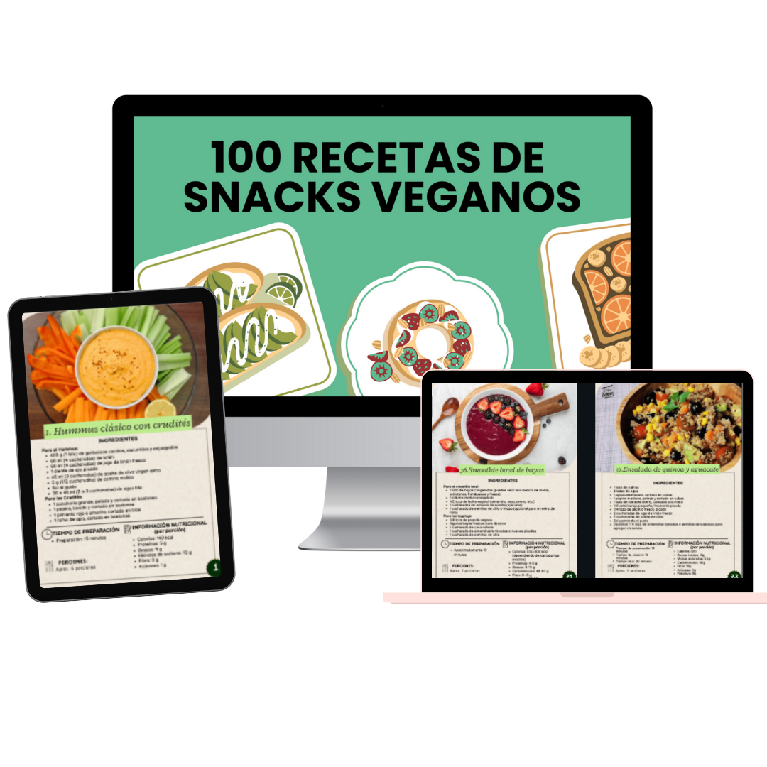 Olvídate de los snacks procesados y llenos de ingredientes artificiales. Con este recetario exclusivo de 100 Recetas de Snacks Veganos, descubrirás opciones rápidas, nutritivas y totalmente deliciosas para calmar el hambre entre comidas sin remordimientos. (Valorado en $7,00) HOY GRATIS POR TU COMPRA