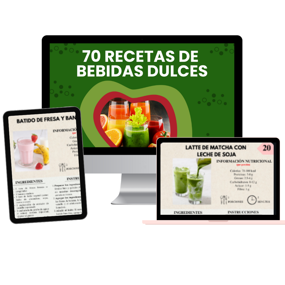 Si amas las bebidas dulces pero quieres opciones más saludables y sin azúcares refinadas, este recetario es para ti. Con 70 Recetas de Bebidas Dulces, descubrirás una selección exclusiva de batidos, smoothies, leches vegetales y tés especiados que deleitarán tu paladar sin culpas. (Valorado en $5,99) HOY GRATIS POR TU COMPRA
