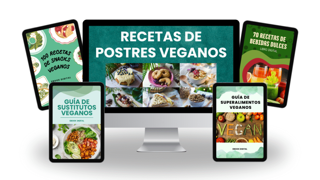 ✅ E-Book +150 Recetas Postres Veganos--> (Valorado en $21,99) ✅ Guía de Sustitutos Veganos --> (Valorado en $8,99) ✅ 100 Recetas de Snacks Veganos--> (Valorado en $7,00) ✅ Guía de Superalimentos Veganos --> (Valorado en $5,99) ✅ 70 Recetas de Bebidas Dulces --> (Valorado en $5,99)